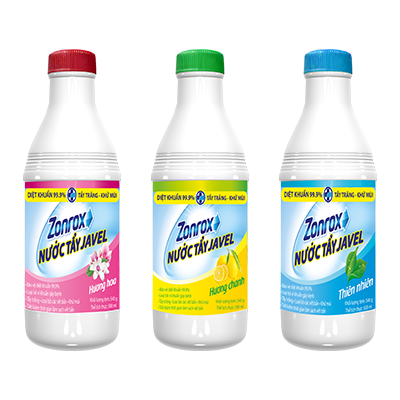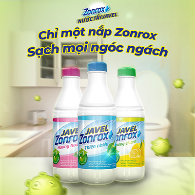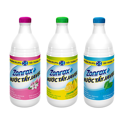 Nước tẩy Javel Zonrox giúp đánh bay các vết bẩn cứng đầu trên quần áo trắng, diệt khuẩn 99.99%, tiết kiệm thời gian làm sạch